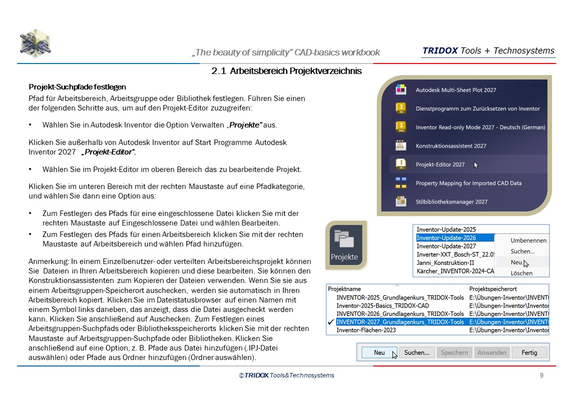 Klicken Sie außerhalb von Autodesk Inventor auf Start Programme Autodesk Inventor 2027 „Projekt-Editor“.
